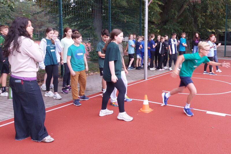 Für unsere neuen Siebtklässler ist am 12. September 2025 eine aufregende erste Schulwoche am Gabriele-von-Bülow-Gymnasium mit viel Spaß und Bewegung zu Ende gegangen. Beim traditionellen Sportfest traten die fünf Klassen in den “klassischen” GvB-Disziplinen Puzzlelauf, Zeitfangen, Brennball, Handtuch-Volleyball und Alaska Frisbee gegeneinander an.