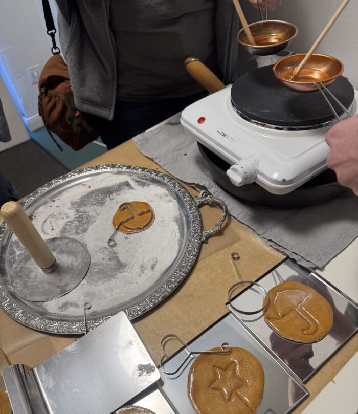 Ein besonderes Highlight war ein traditionelles Spiel, bei dem wir aus Zuckerformen mit einer Nadel vorsichtig Figuren herauslösen mussten, ohne sie zu zerbrechen. Außerdem stellten wir eine typische Neujahrssituation nach, bei der man sich respektvoll verbeugt und bedankt. Dafür erhielten wir symbolisch ein kleines Neujahrsgeld in Höhe von 1.000 Won, wie es in Korea traditionell üblich ist.