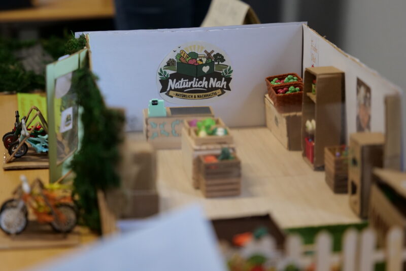 - Den Sonderpreis erhielt ein Team, das ein Konzept für einen Supermarkt entwickelte, der vollständig in die Kreislaufwirtschaft eingegliedert ist, und dieses Konzept in einem aufwendig gebastelten Modell präsentierte.
