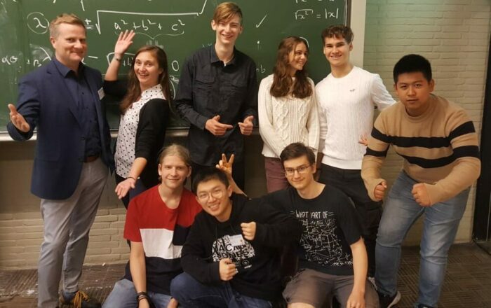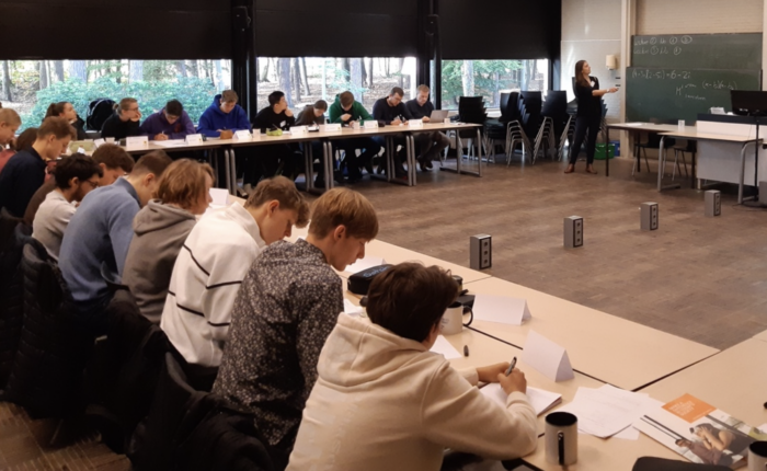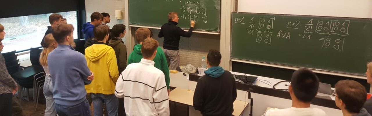 „Die Leistungskurse Physik des ersten und dritten Semesters hatten die einmalige Gelegenheit, an einem Talentprogramm zu angewandter Mathematik im Bereich der Quantentheorie teilzunehmen. Der Kurs fand vom 20. bis 23. Oktober 2022 an der Universität Twente in den Niederlanden statt und stand insgesamt 30 Schülern von drei verschiedenen deutschen Schulen aus Berlin, Düsseldorf und Wiesbaden offen. Organisiert wurde er von Professor Dr. Frederic P. Schuller und der Assistenzprofessorin Dr. Silke M. Glas.