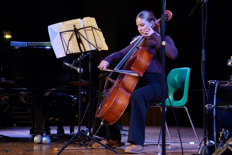Unsere Bülow-Talente zeigten am Dienstag, 3. März 2026, im Fontane-Haus in verschiedenen Performances ihr Können – von Tanz, Poetry über Gesang bis hin zu Cello und einer mitreißenden Band-Performance, getaucht ins Lichtermeer von Smartphones.