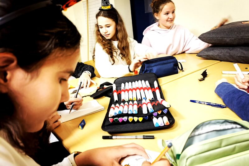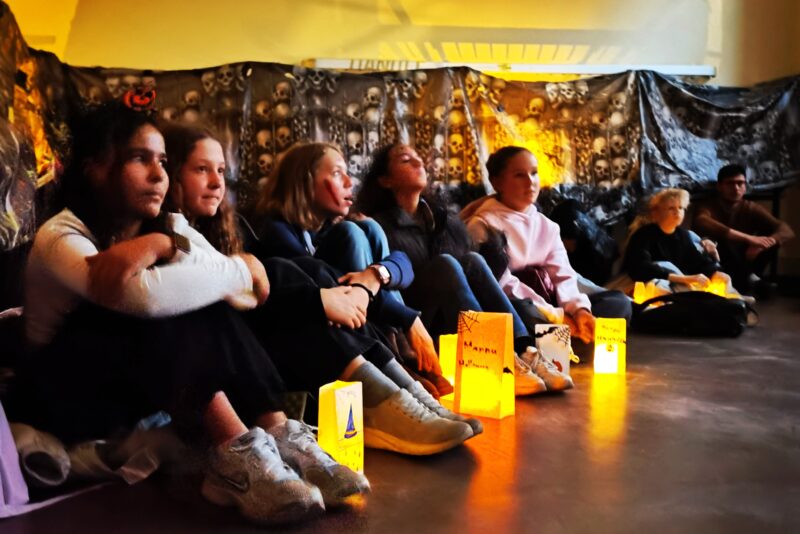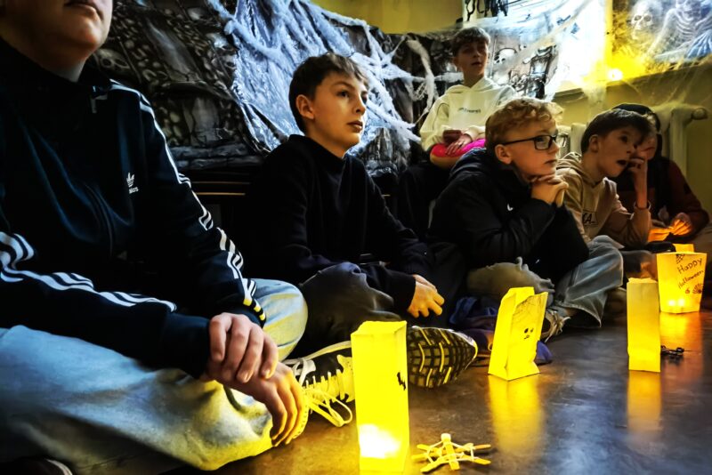 Am 16. Oktober 2025 fand wieder der inzwischen schon traditionelle Grusel-Leseabend statt. Nach dem gemeinsamen Basteln in schaurig-schön geschmückten Klassenräumen lauschten mehrere Dutzend Siebtklässler stimmungsvollen Gruselgeschichten, die von älteren Schüler*innen bzw. Oberstufen-Schüler*innen verfasst worden waren.