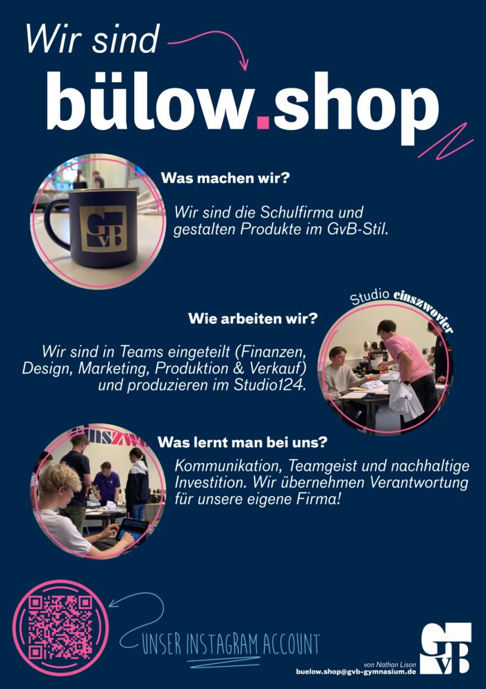 Du willst mehr wissen? Dann kontaktiere uns unter buelow.shop@gvb-gymnasium.de!